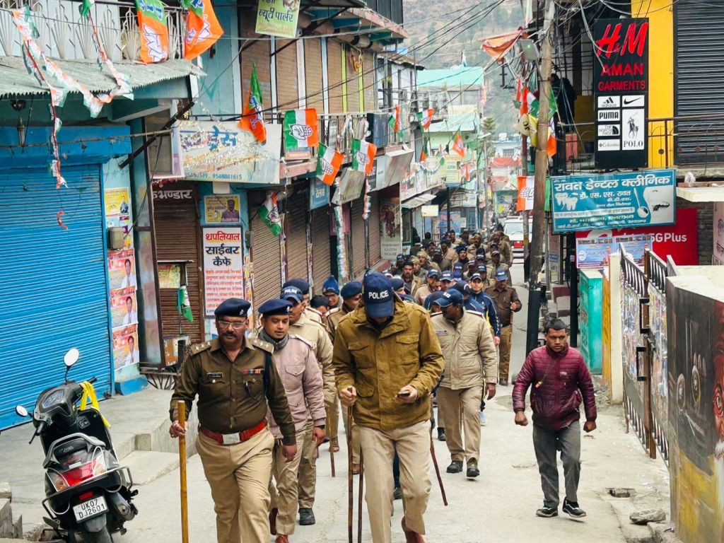 नगर निकाय सामान्य निर्वाचन के दृष्टिगत पुलिस अधीक्षक उत्तरकाशी के निर्देशन में आज उत्तरकाशी पुलिस द्वारा बड़कोट बाजार में फ्लैग मार्च निकालकर आम जनमानस को पारदर्शी तथा भयमुक्त चुनाव का भरोसा दिलाया गया।