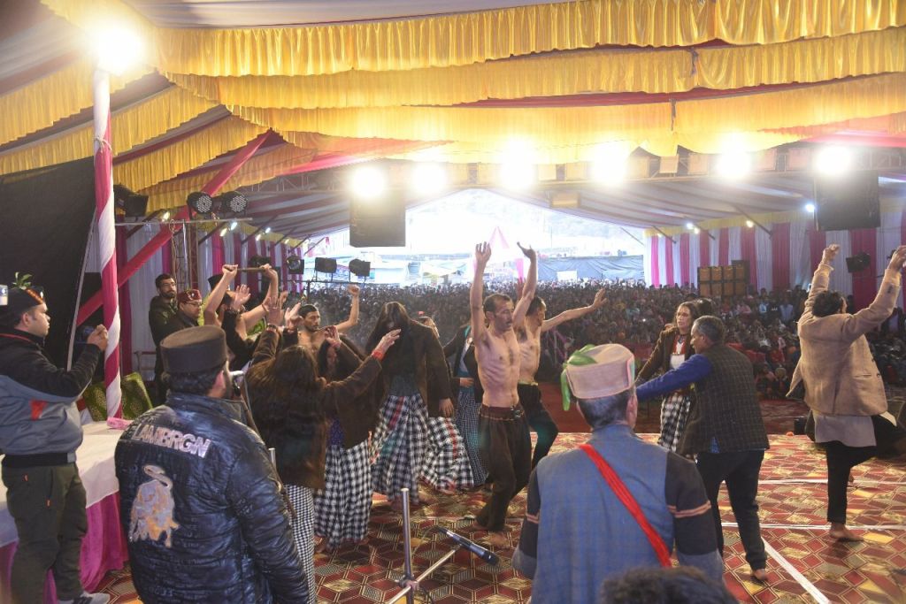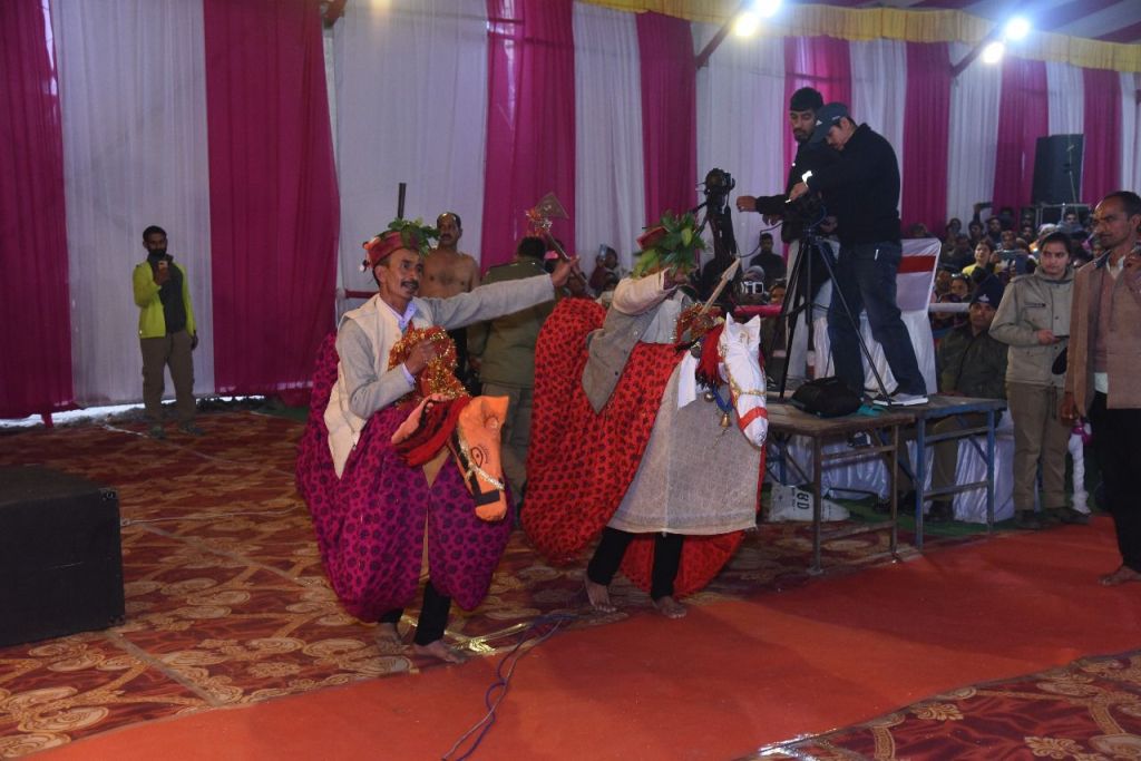 माघ मेला बाराहाट कू थौलू उत्तरकाशी पंडाल में सरनौल के पांडव नृत्य में महाभारत कालीन पारंपरिक संस्कृति दिखी।