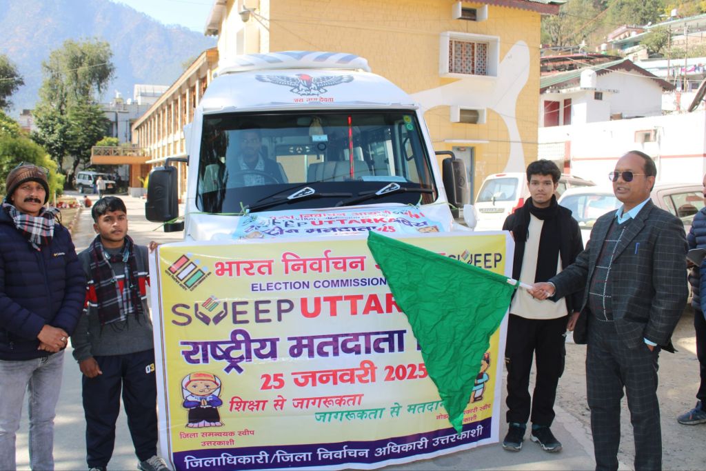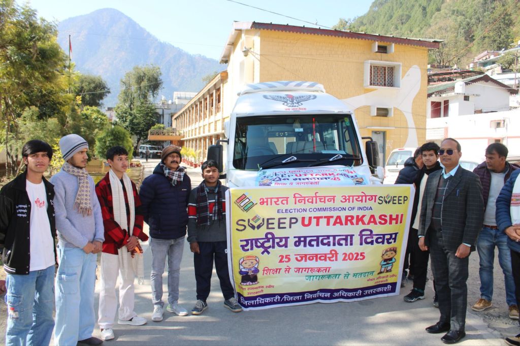 उक्त वाहन द्वारा 25 जनवरी को राज्यस्तर पर देहरादून में आयोजित मतदाता दिवस कार्यक्रम में स्वीप कार्यक्रम में स्कूली छात्रों द्वारा शामिल होकर प्रतिभाग किया जाएगा। इस अवसर पर अपर जिलाधिकारी ने कहा कि एक मजबूत लोकतंत्र की स्थापना के लिए हम सभी को मतदान अवश्य करना चाहिए।