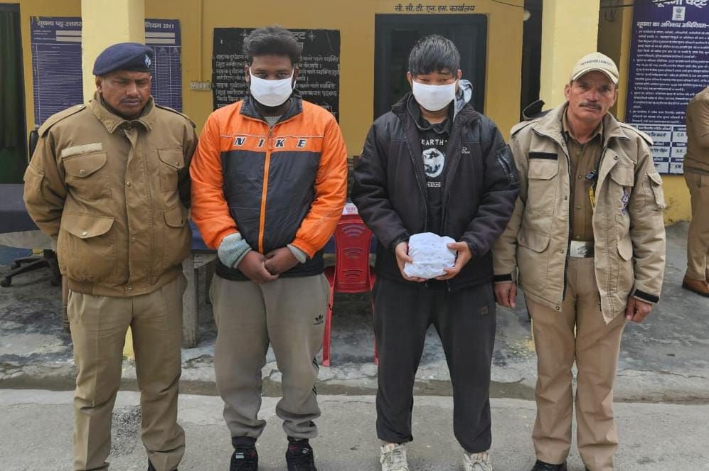 चैकिंग अभियान के तहत पुलिस उपाधीक्षक बडकोट के पर्यवेक्षण तथा थानाध्यक्ष मोरी रणवीर सिंह चौहान के नेतृत्व में मोरी पुलिस टीम द्वारा कल की देर सायं को मोरी-नेटवाड रोड पर रा0इ0कॉ0 से आगे चैकिंग के दौरान विरेन्द्र थापा पुत्र महेंद्र थापा क्लैपन्टाउन देहरादून उम्र(26) वर्ष व लविश पुत्र क्लैपन्टाउन देहरादून उम्र (26) वर्ष नाम के दो युवकों को वाहन संख्याUK07DY 6797 (स्कूटी ) से अवैध चरस का परिवहन करते हुये गिरफ्तार किया गया, जिनके कब्जे से 712 ग्राम अवैध चरस बरामद की गयी ।(एक लाख सत्तरह हजार लगभग)