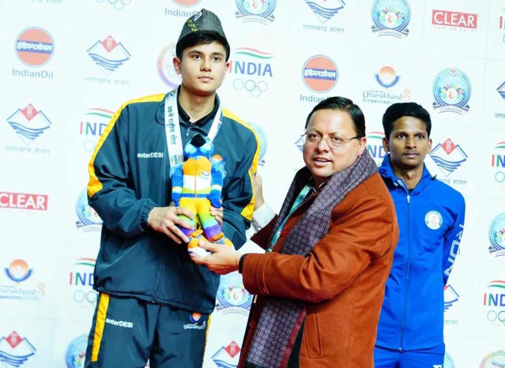 मुख्यमंत्री श्री पुष्कर सिंह धामी ने आज परेड ग्राउण्ड, देहरादून में 38वें राष्ट्रीय खेल-2025 के अन्तर्गत आयोजित बैडमिंटन प्रतियोगिता का अवलोकन किया। इस अवसर पर मुख्यमंत्री ने विजेता खिलाड़ियों को मेडल पहनाकर सम्मानित किया। मुख्यमंत्री ने विभिन्न राज्यों से आए खिलाड़ियों से मुलाकात कर उनका उत्साहवर्धन भी किया।