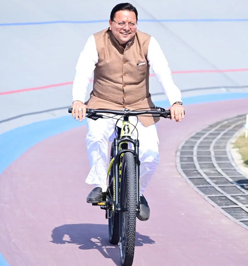 उत्तराखण्ड में 38वें राष्ट्रीय खेलों के दौरान मुख्यमंत्री पुष्कर सिंह धामी ने खुद भी साइकिलिंग कर खिलाड़ियों को प्रोत्साहित किया।