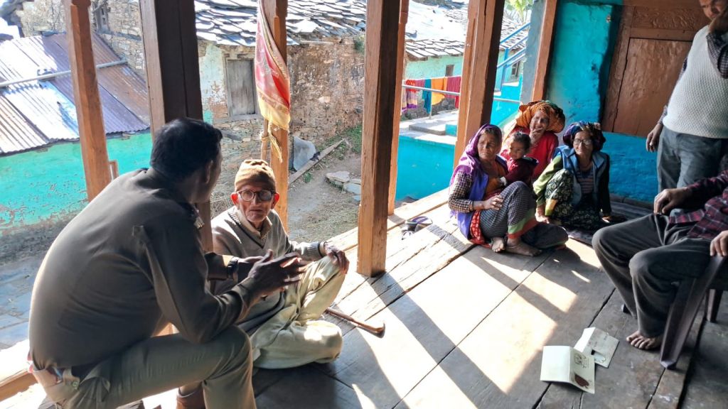 पुलिस अधीक्षक उत्तरकाशी के निर्देशन में चलाए जा रहे जनजागरुकता अभियान के अंतर्गत आज प्रभारी निरीक्षक धरासू दिनेश कुमार के नेतृत्व में धरासू पुलिस की अलग–अलग टीमों द्वारा थाना क्षेत्र के ग्राम टिपरी, चिलोट तथा डांग गांव में जाकर गांव के सीनियर सिटीजन से मुलाकात कर उनके हाल–चाल जाने गए।