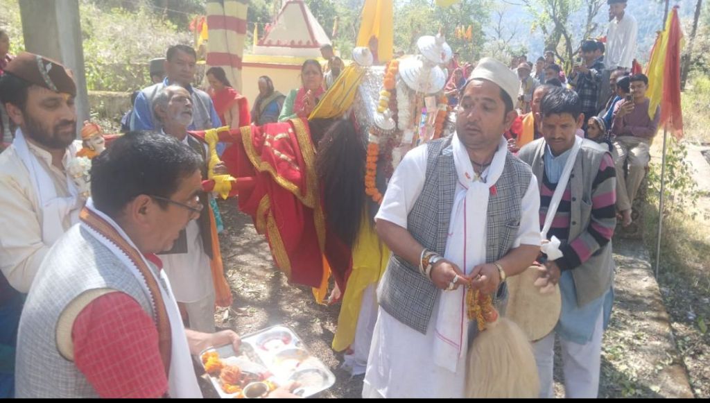 आराध्य कचडू देवता के पौराणिक मंदिर मे नयी मूर्ति व चांदी के ढोल की रनाडीं गांव मे विशेष अनुष्ठान के साथ प्राण प्रतिष्ठा की गई।