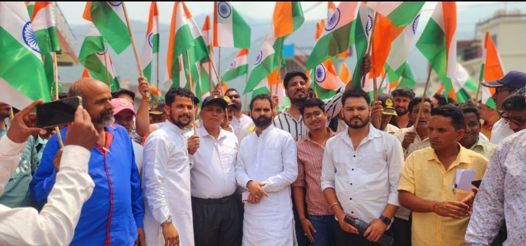 सैकड़ों कार्यकर्ताओं ने गौरवगाथा तिरंगा यात्रा निकाली है।