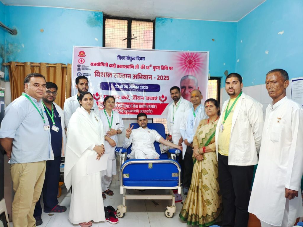 शुक्रवार को मुख्य चिकित्सा अधिकारी डॉ. बी.एस. रावत एवं प्रमुख अधीक्षक डॉ. पी.एस. पोखरियाल की अध्यक्षता में जिला चिकित्सालय उत्तरकाशी में प्रजापिता ब्रह्माकुमारी ईश्वरीय विश्व विद्यालय, जोशियाडा की ओर से भव्य रक्तदान शिविर का आयोजन किया गया।