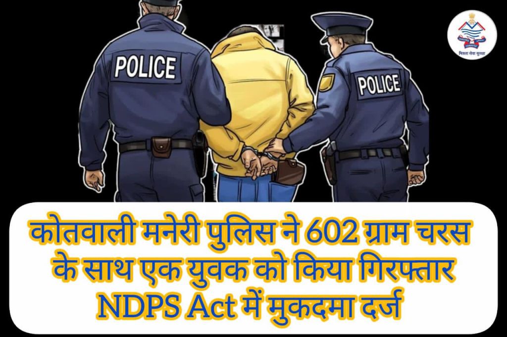 । डीएसपी जनक सिंह पंवार के पर्यवेक्षण में प्रभारी निरीक्षक मनेरी प्रदीप सिंह तोमर के नेतृत्व वाली टीम ने भटवाड़ी मल्ला से सिल्ला मार्ग पर रजनीश राणा (21 वर्ष, निवासी पिलंग उत्तरकाशी) को 602 ग्राम अवैध चरस (मूल्य करीब 1.2 लाख) के साथ गिरफ्तार किया।कानूनी कार्रवाईगिरफ्तारी के आधार पर कोतवाली मनेरी में NDPS एक्ट की धारा 8/20 के तहत मुकदमा दर्ज हुआ।