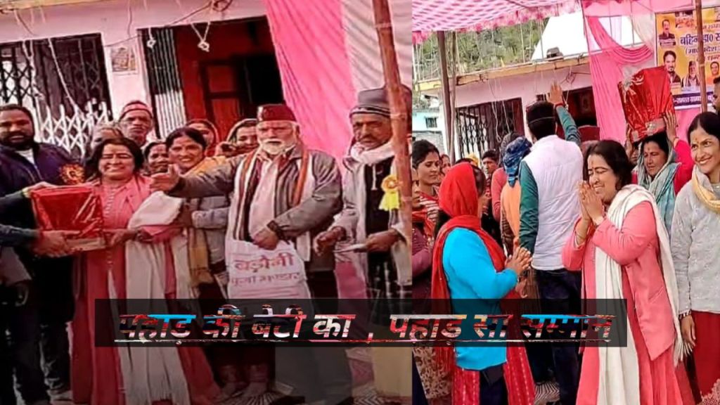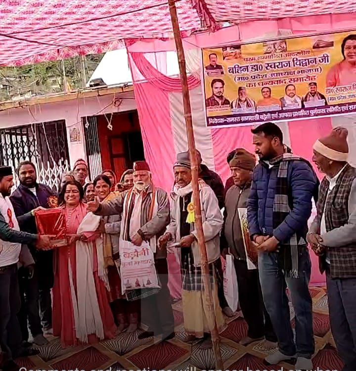 स्वराज विद्वान को कलेयू अर्षा /पकवान देकर सम्मान किया गया। स्वराज विद्वान वर्ष 2017 से 20 तक राष्ट्रीय अनुसूचित जाति आयोग भारत सरकार में सदस्य थी । इसी विस्थापन कार्य को करवाने के लिए आज सभी ग्रामीणों के द्वारा स्वराज विद्वान का धन्यवाद कार्य क्रम का आयोजन कर बड़ेथी में स्वागत अभिनंदन किया गया । स्वराज के अनुसार अपनी गांव की बेटी के रूप में माघ माह में पहाड़ की परम्परा के अनुसार मुझे अर्षा कलेयू भेंट किया गया।मैं इस सम्मान के लिए समस्त बड़ेथी गांव के लोगों का आभार एवं धन्यवाद ज्ञापित करती हूं। इस अनोखे सम्मान उपहार से स्वराज विद्वान आनंदित दिखी ।