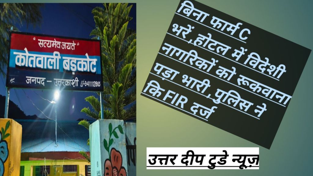 उत्तरकाशी, 7 फरवरी 2026: विदेशी पर्यटकों को होटल में ठहराने के नियमों का उल्लंघन करते हुए कोतवाली बडकोट क्षेत्र के दोबाटा में होटल शिवम के स्वामी के खिलाफ पुलिस ने मामला दर्ज किया है।दिसंबर 2025 के अंत में होटल स्वामी ने बिना पुलिस या LIU को सूचना दिए और फॉर्म सी भराए 11 विदेशी नागरिकों को अपने होटल में रुकवाया था।